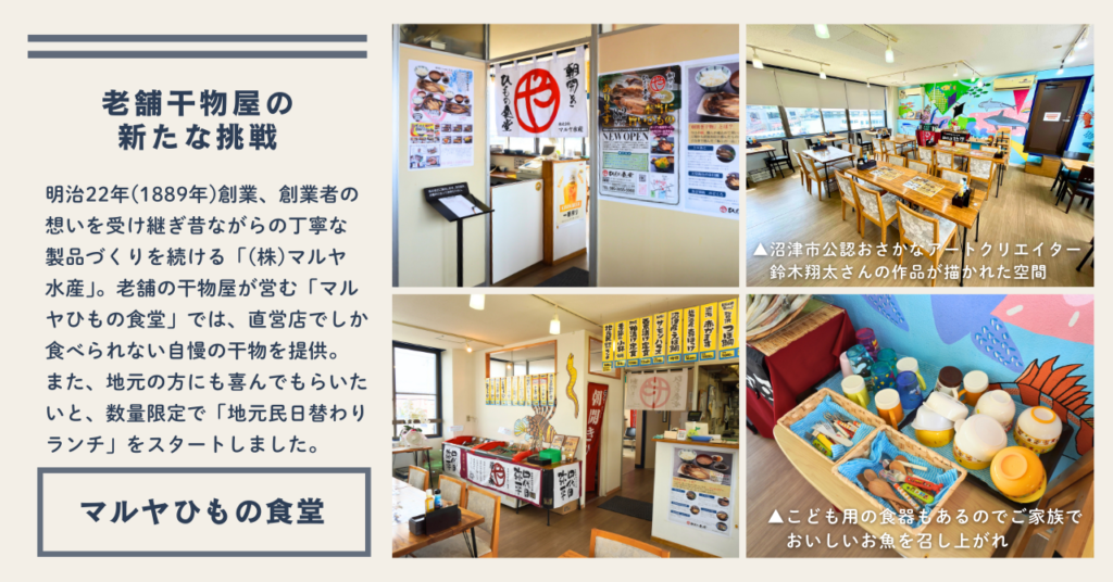 「本当においしい干物があります。味わっていただくことで、”沼津といえば干物”と、沼津の特産品を再認識していただけると思います。地元の方も観光客の方もマルヤひもの食堂にぜひいらしてください」(望月さん)